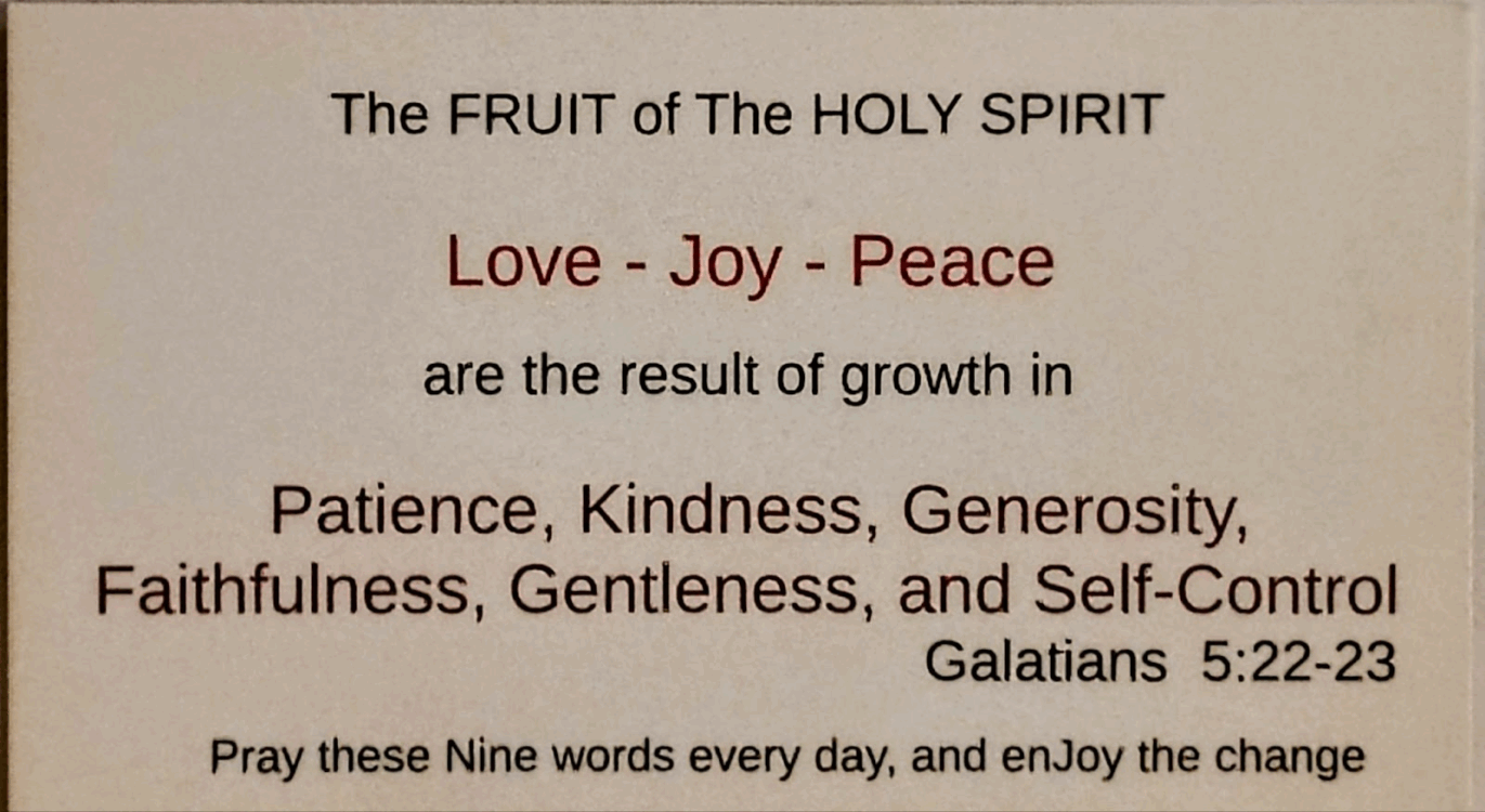 If you want to grow in Love, Joy, and Peace this is a result of growth in Patience, Kindness, Generosity, Faithfulness, Gentleness, and Self-Control.